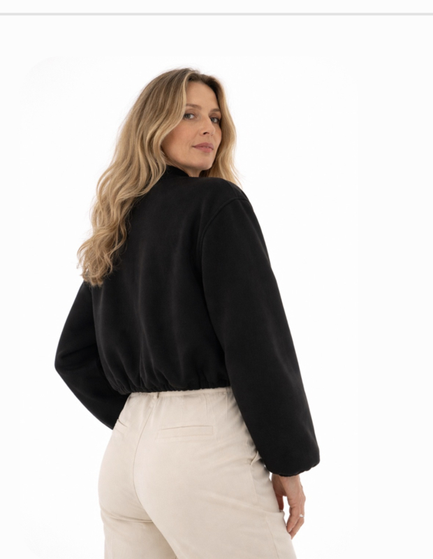 Geweldig leuk Bomberjacket binnen!! Een zachte stof met ronde kraag en ritssluiting. EEn rimpel effect op de rug wat een leuk effect geeft.