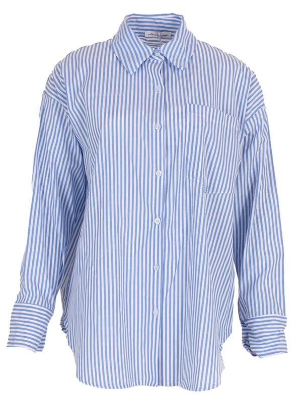 Blouse gesstreept van Azzurro mode die mag niet ontbreken in je kast. Deze gestreepte Blauw - Wit blouse is een item die je basic kast compleet maakt. De blouse heeft een grote borstzak op de linkerkant. De lose fit oversized blouse draagt comfortabel.